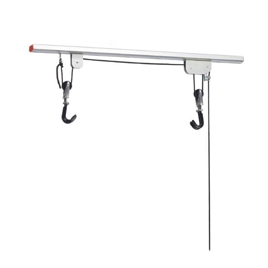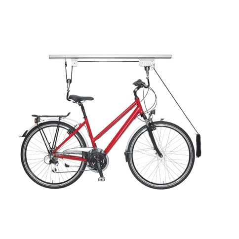 · Aluminium sonstruction bicycle lift with unique pulley locking mechanism system easily lifts a bike up and away for easy storage.